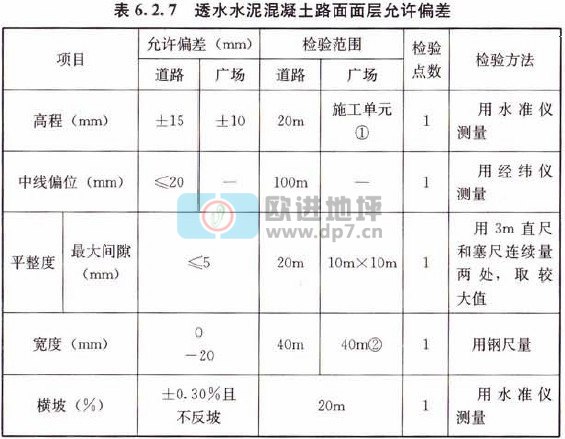 6.2.7透水水泥混凝土路面面層允許偏差應符合表6.2.7的規定。