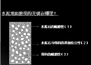混凝土地面中骨料自身的耐磨性一般沒有問題,出現起灰起砂的關鍵原因主要是水泥石的耐磨性和水泥石與骨料界面的結合性。