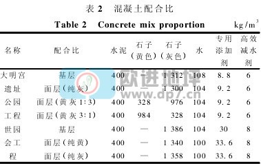 5)大明宮遺址公園和世園會兩個工程分別屬于夏季和冬季施工,對沖洗時間要求不同;即使是在同一個工程,晝夜溫差較大時,也要視施工情況對配合比作適當調整。