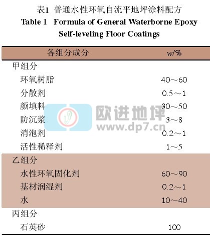 普通水性環氧自流平地坪涂料配方如表1所示。
