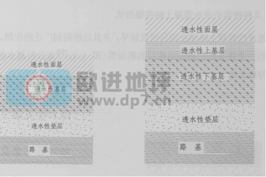 1、人行道和輕交通的透水路面的基本形式,如圖4一2所示。