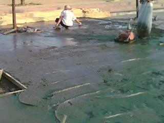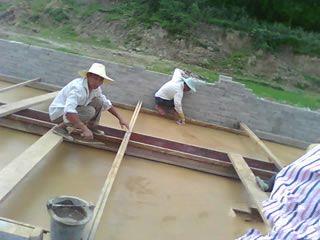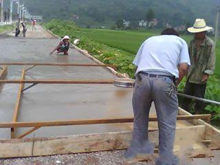 | | 藝術地坪施工2. 攤鋪標準砼.推薦配合比為:32.5水泥424KG,粗沙400KG,細沙400KG,石子(瓜子片)1100KG,水185-195KG; |
