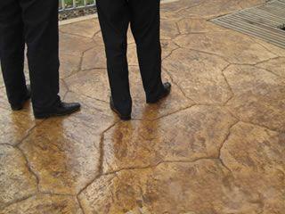 | 藝術地坪施工11. 沖洗的地坪表面干燥后,涂刷歐進亮光養護劑. 使壓模地坪表面防污染防滑性能再次加強. 完成后的硬化壓模地坪除了很好的裝飾性以外,其物理性能也非常穩定; |