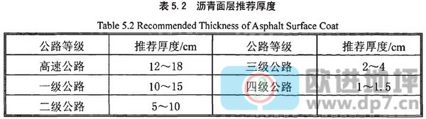 由于面層直接承受行車荷載和環(huán)境因素的作用,因此要求用強度高、剛度高、穩(wěn)定性好的材料作面層。高等級公路上的面層常采用兩層或三層結(jié)構(gòu)。采用兩層時分別稱為表面層和底面層,采用三層時分別稱為表面層、中面層和底面層。各級公路面層推薦厚度如表5.2。