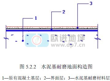 5.2.2 原有混凝土上的水泥基耐磨地面的構造應由原有混凝土基層、界面層、水泥基耐磨材料層構成(圖 5.2.2)。