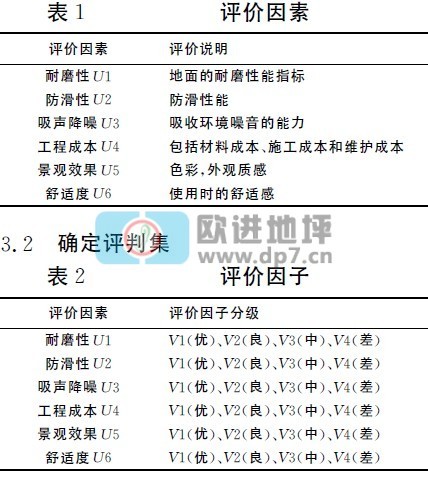 U={耐磨性U1,防滑性U2,吸聲降噪U3,工程成本U4,景觀效果U5,舒適度U6}。