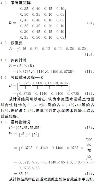 4 透水混凝土地面鋪裝綜合效益模糊綜合評價分析